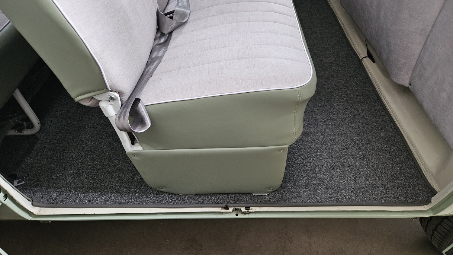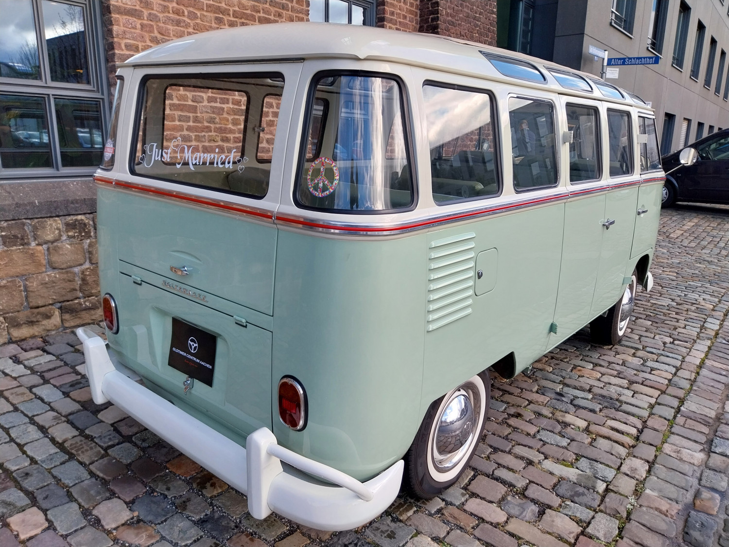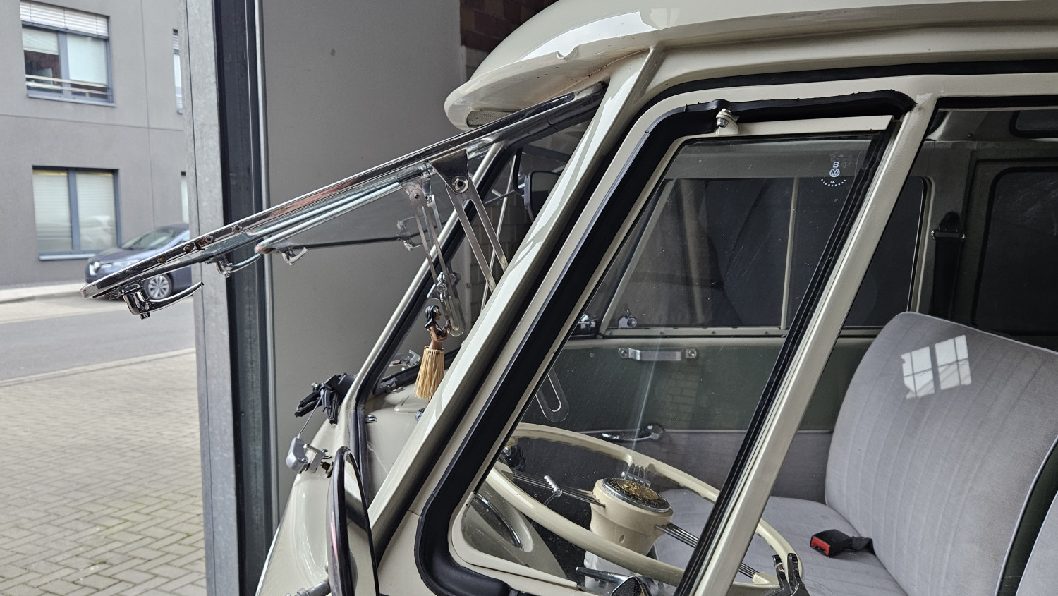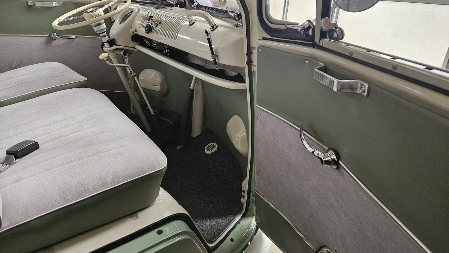 Dieses begehrte Sammlerobjekt glänzt mit seinen 23 Fenstern, die eine Rundumsicht ermöglichen sowie seiner harmonischen zweifarbigen Lackierung und der Safari-Frontscheibe, die sich komplett öffnen lässt. Der Innenraum ist mit drei Sitzreihen und 9 Sitzplätzen sehr geräumig ausgestattet.