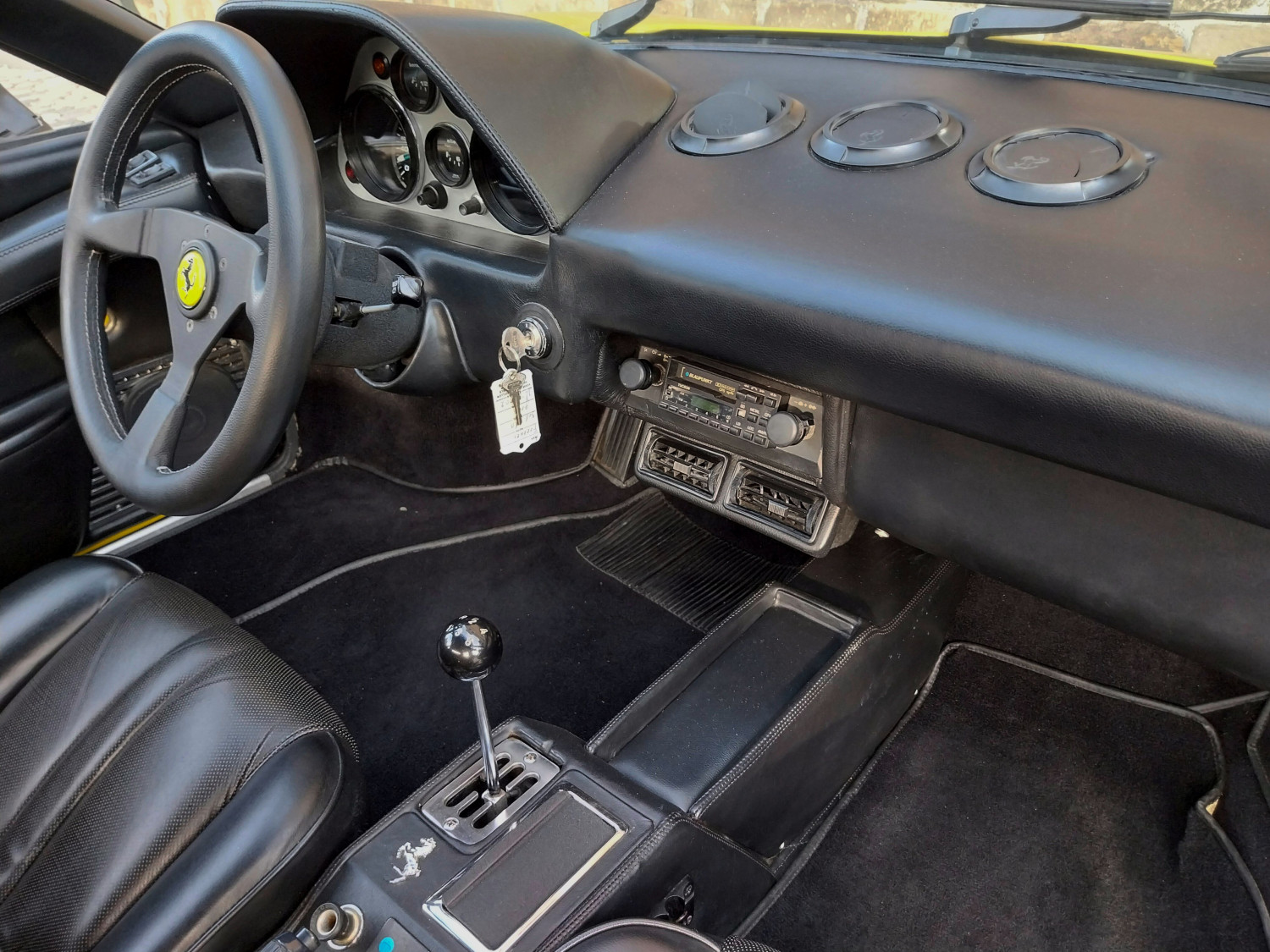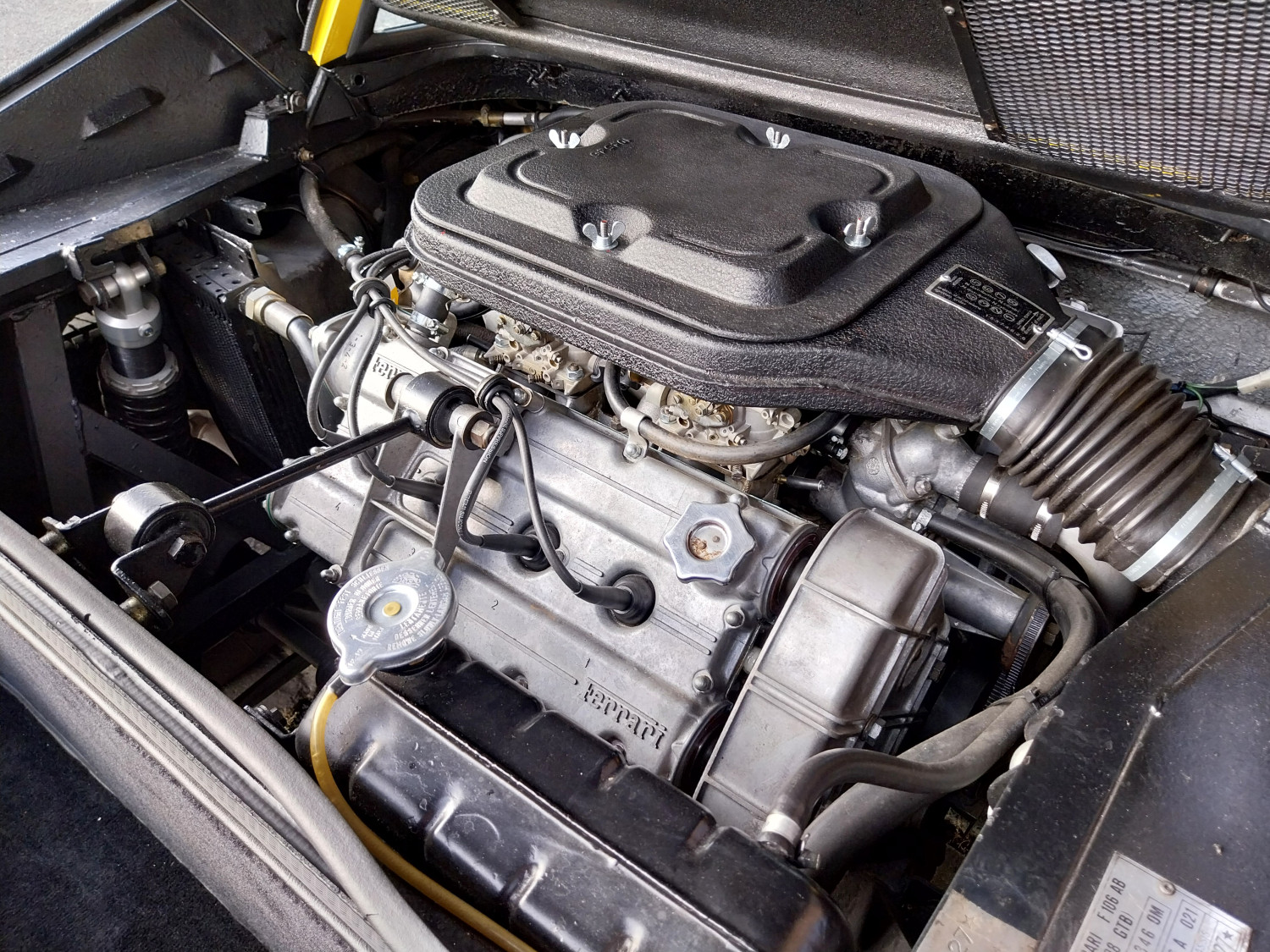 Dieser, hier angebotene 308 GTB, in seltenem, wie ikonischem ‚Modena Giallo‘, wurde zunächst nach Östereich ausgeliefert bevor er seinen Weg in die Hände von Mitgliedern des niederländischen Ferrari Clubs in Holland fand. 2016 kam er nach Deutschland, wurde regelmäßig gefahren und im Frühjahr 2025 einer Generalüberholung mit Zahnriemenwechsel unterzogen. Bei dieser wurde auch der defekte Originalmotor durch einen instandgesetzten GTS Motor (ohne Trockensumpfschmierung) ausgetauscht. Nun präsentiert er sich mit 4 Doppel-Weber-Vergasern und einem super Sound durch ein Edelstahl-Sport-Auspuff-System.