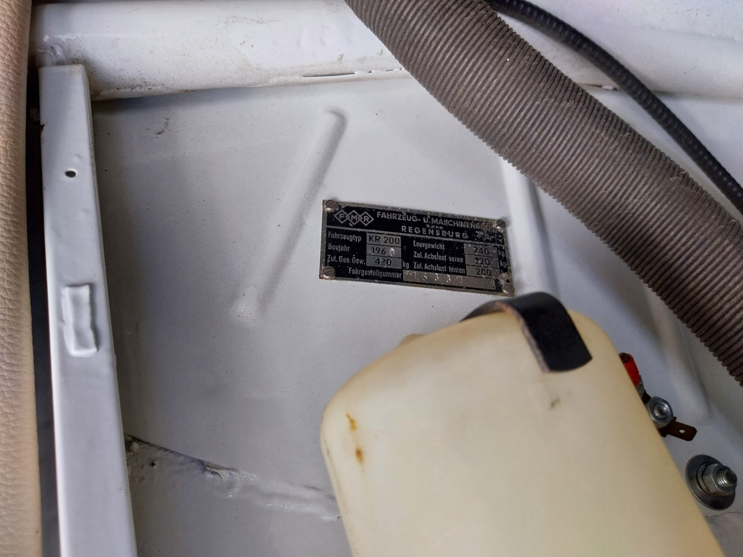 Der hier angebotene KR200, dessen erster Halter, wie aus der Dokumentation hervorgeht, ein Bandmitarbeiter der Firma Messerschmitt in Regensburg war, wurde im Jahr 2007 restauriert und neu aufgebaut, inklusive Motor. Eine Foto-Dokumentation ist vorhanden.